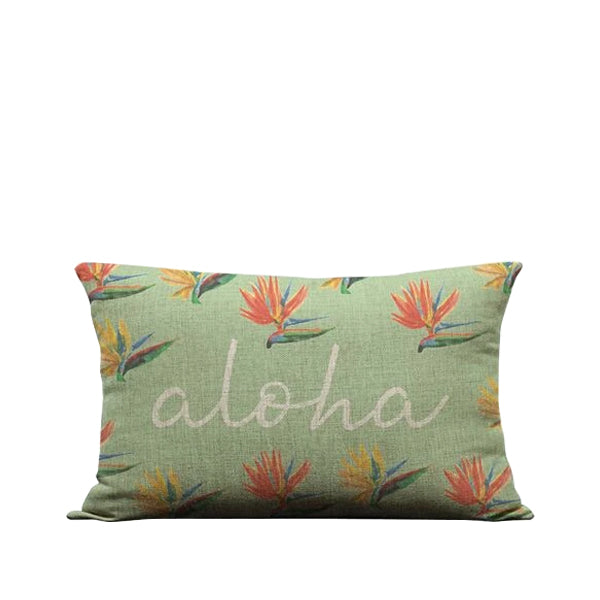 Our Birds of Paradise Aloha Script, Sky Pillow Cover is made in linen fabric with zipper hidden at the bottom. The linen we use is thick and very durable. These pillows are high-impact and will be noticed in any setting. They are fully printed from corner to corner we sew them after they are printed. Perfect for beach or tropical themed home decor!