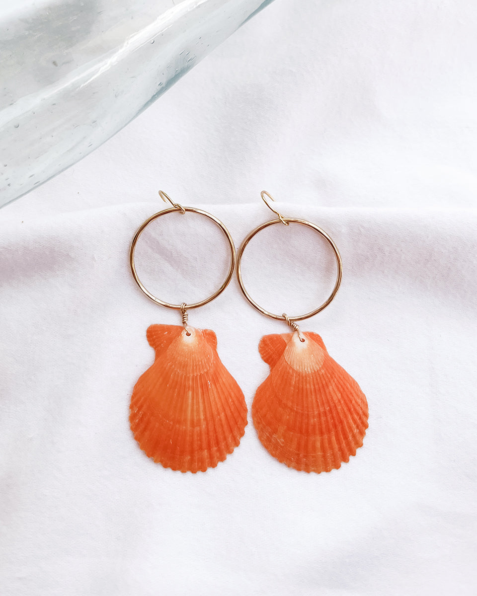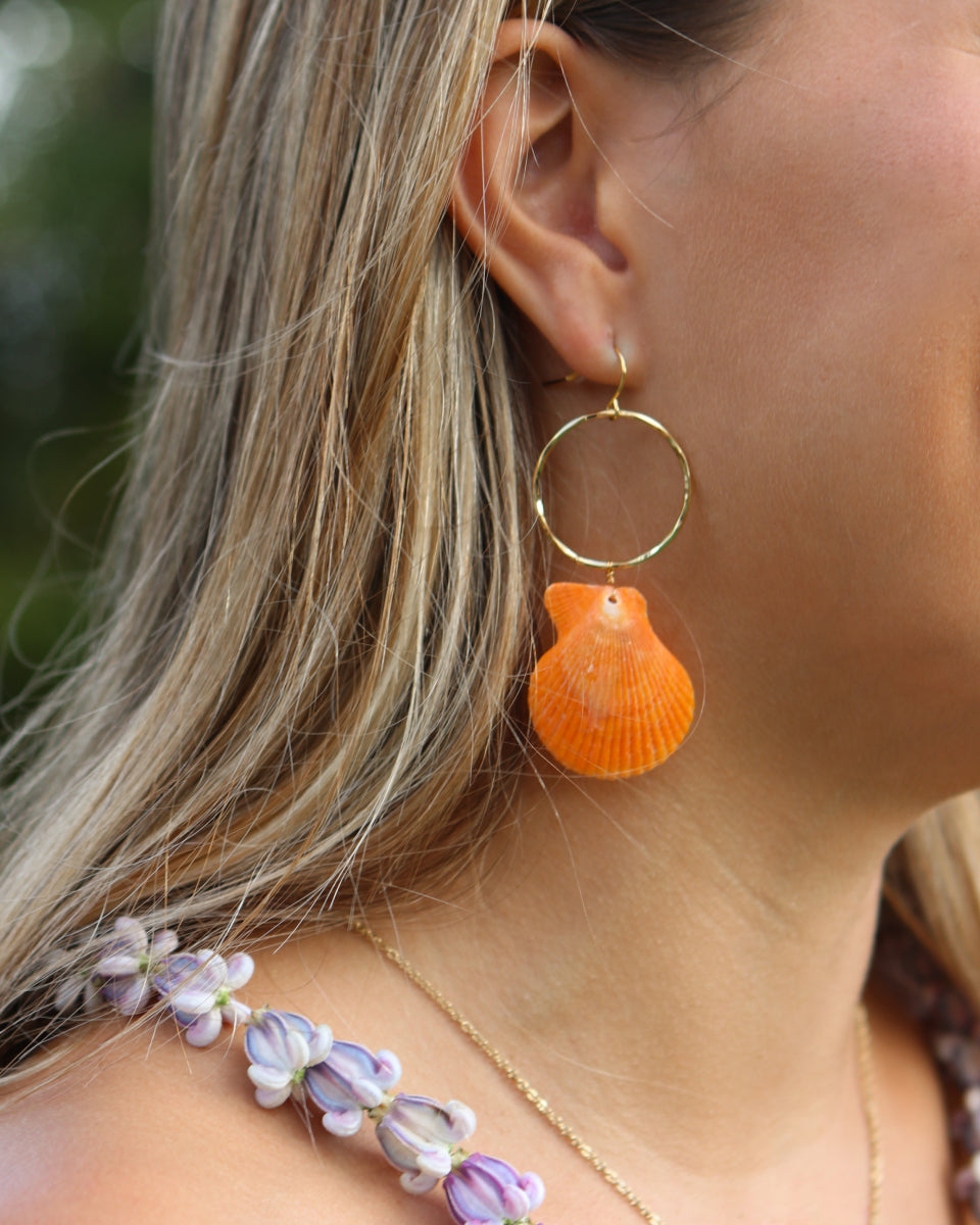 Manini Scallop Shell and Small Hammer Hoop Earring, Gold