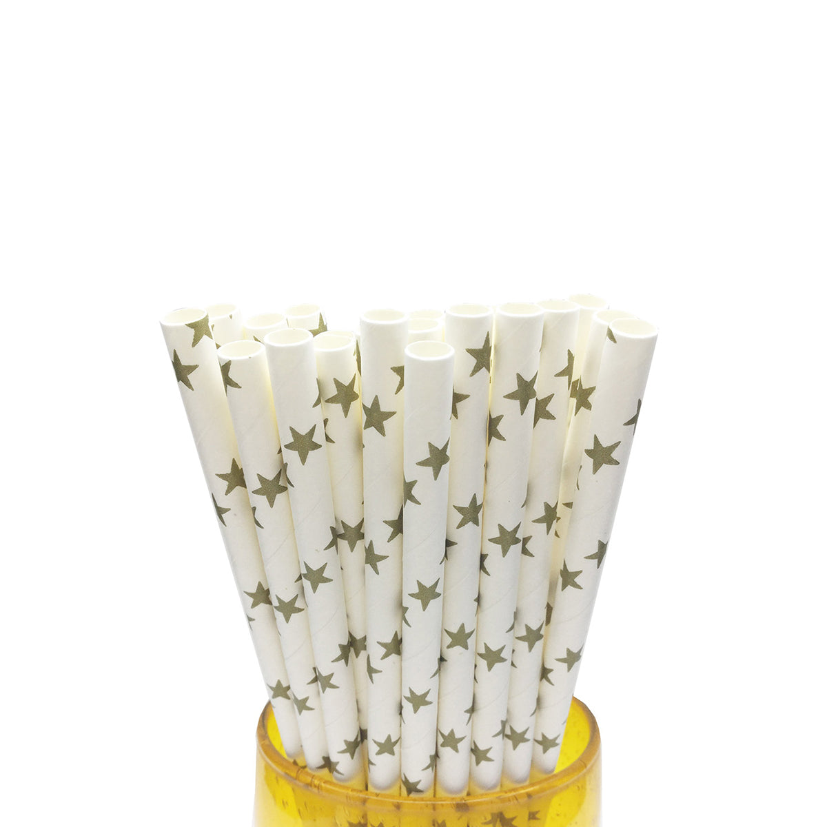 Paper Straw Pack of 25, White with Gold Stars