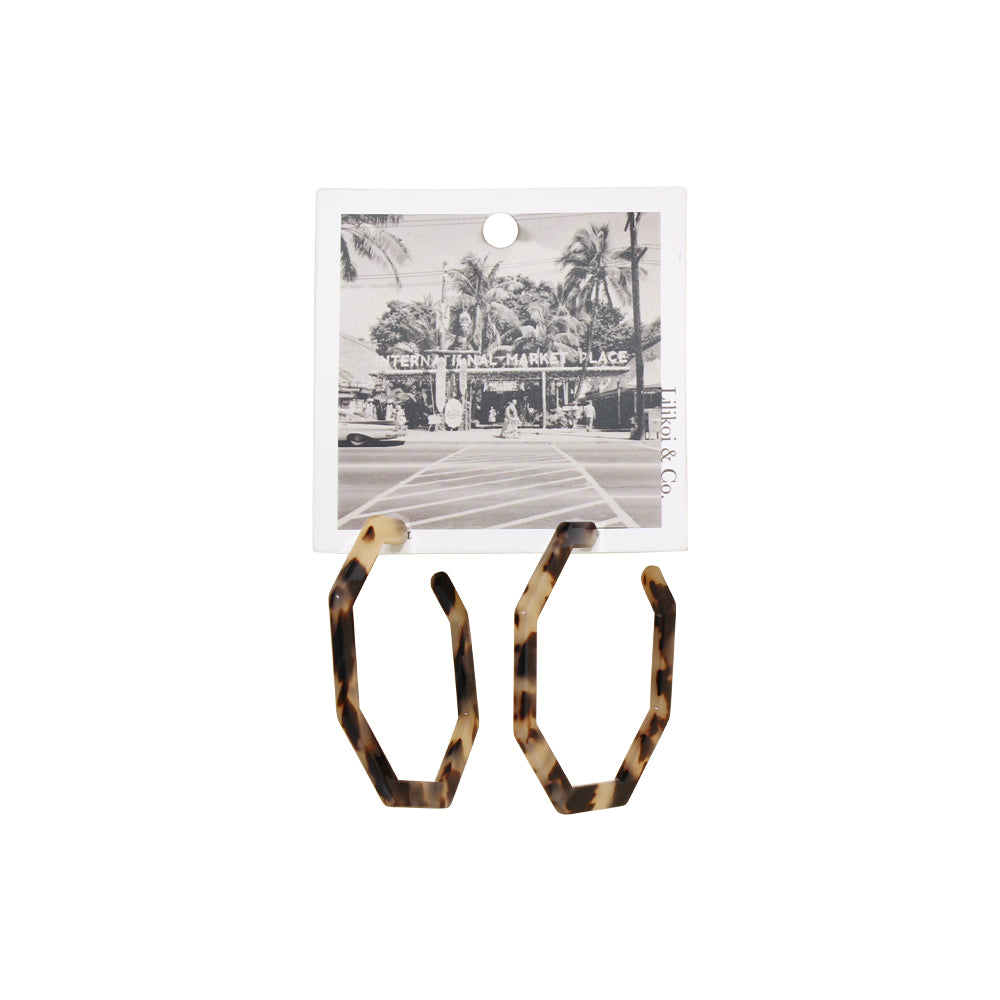 Octagon Tortoise Hoop Earrings Black & White
