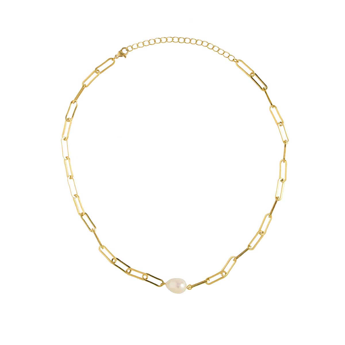 16in Paperclip Necklace White Fresh Pearl, Gold