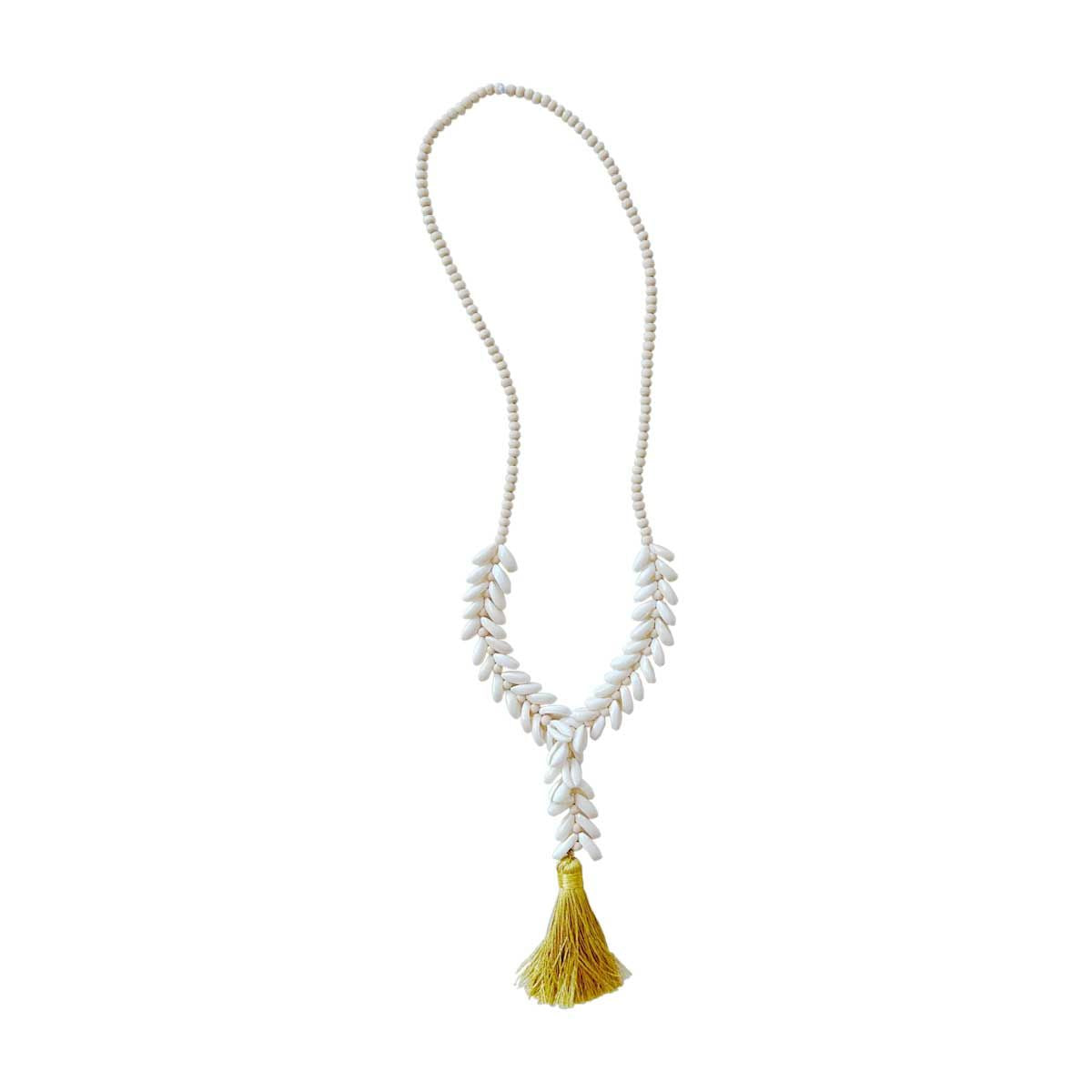 *Cowrie Necklace Beads with Tassel Pendant, Yellow