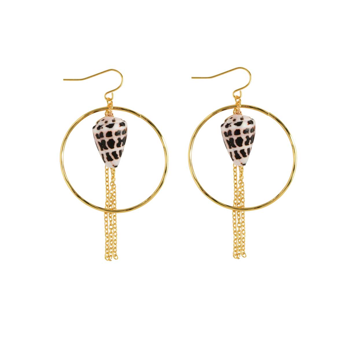 Hebrew Shell Shower Hammer Hoop Earring, Gold