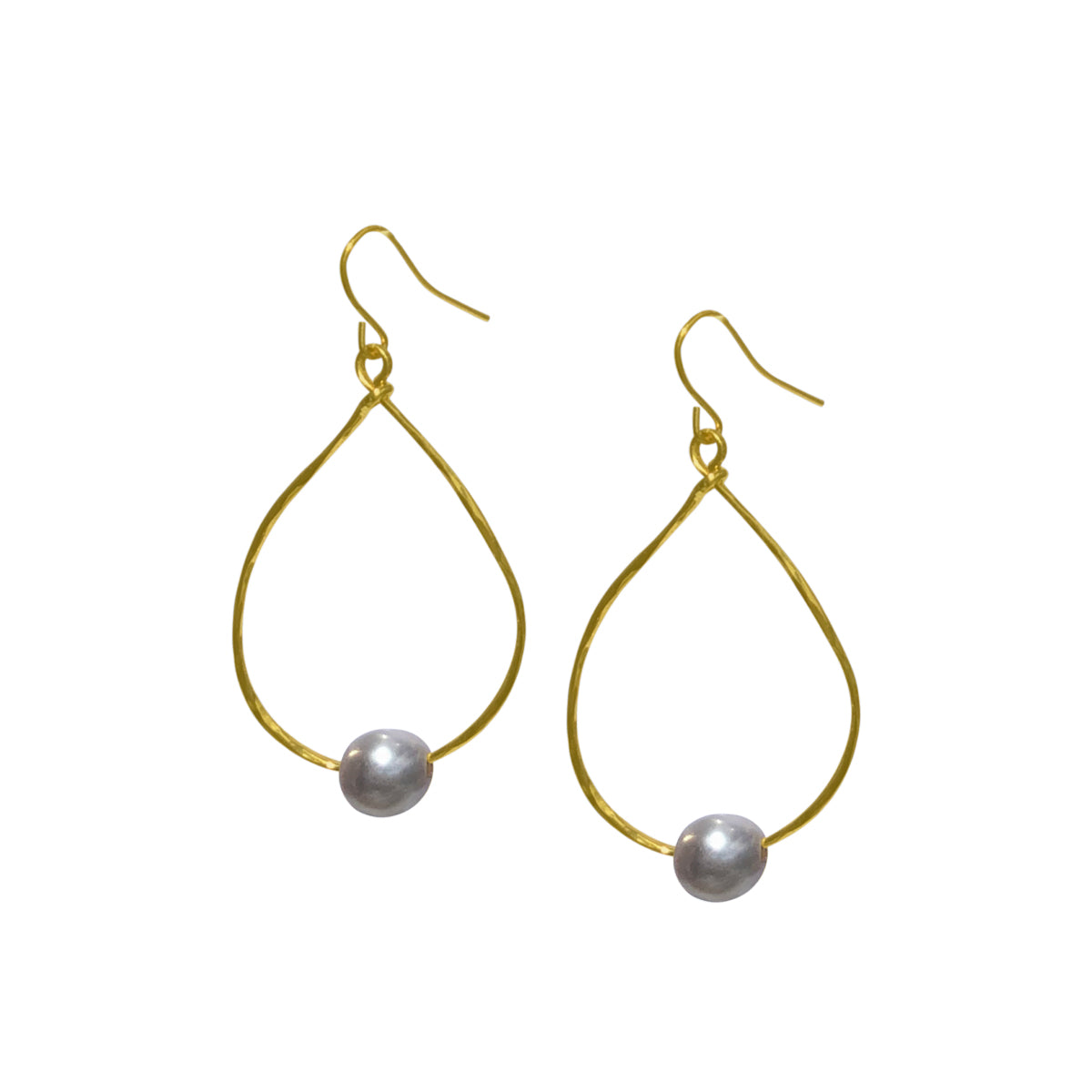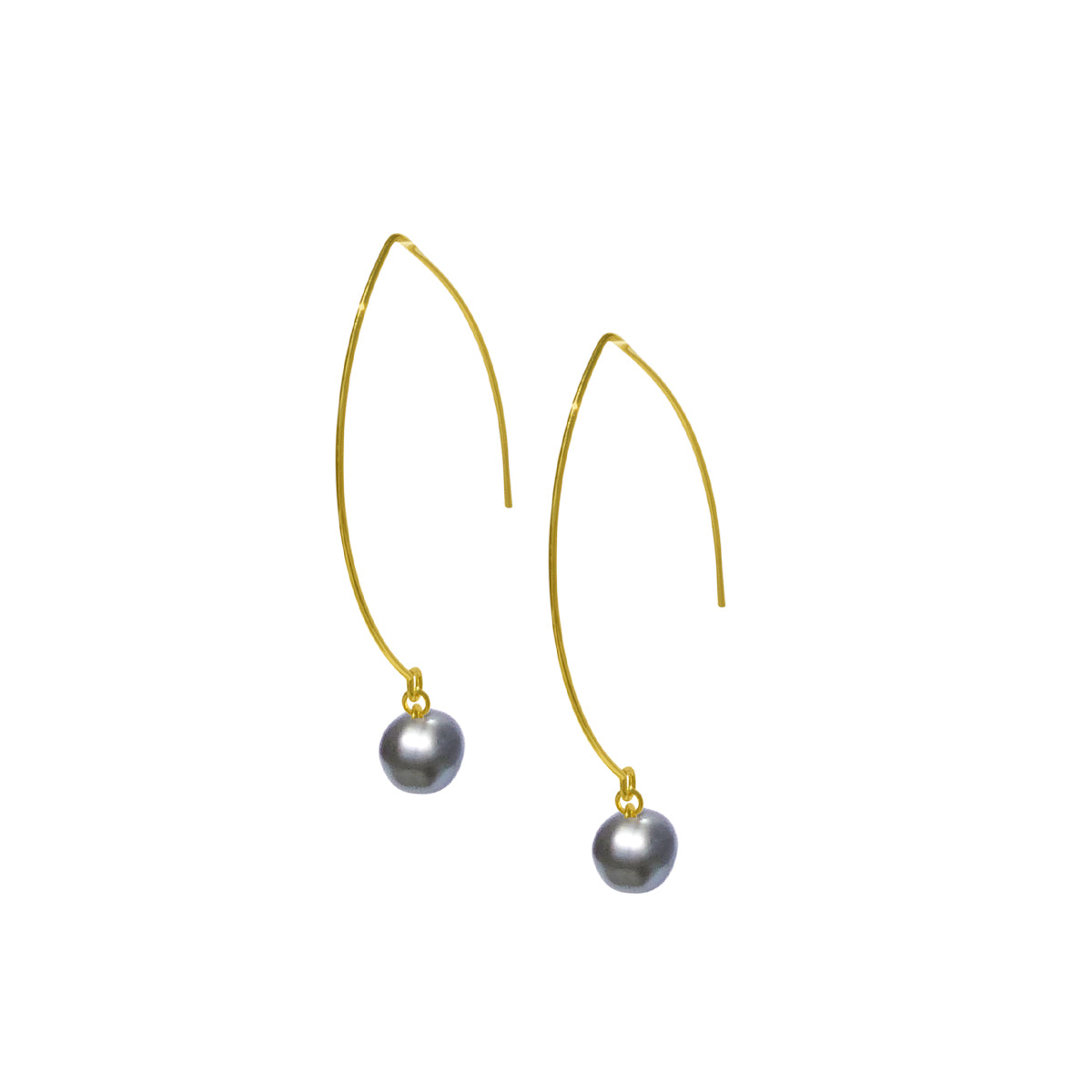 Grey Pearl Wire Drop Earrings