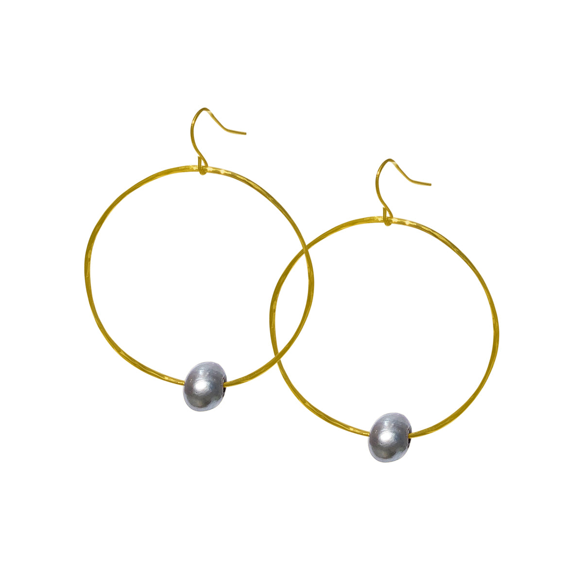 Grey Pearl Hoop Earrings