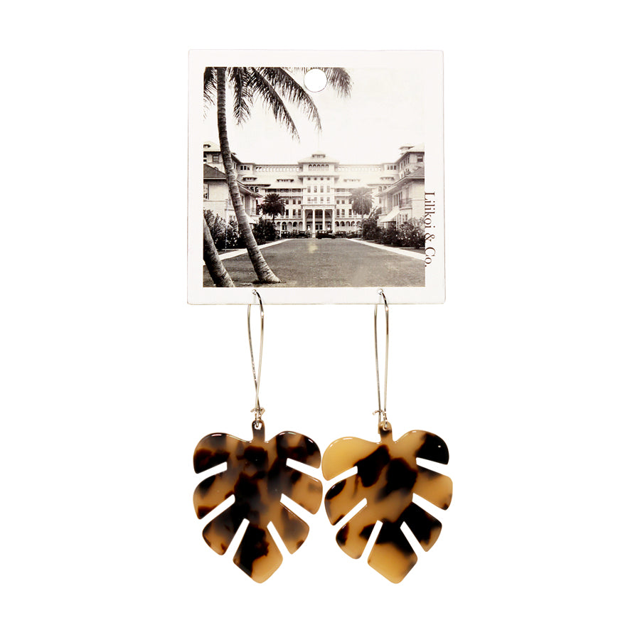 Monstera Tortoise Long Drop Earrings Black & White