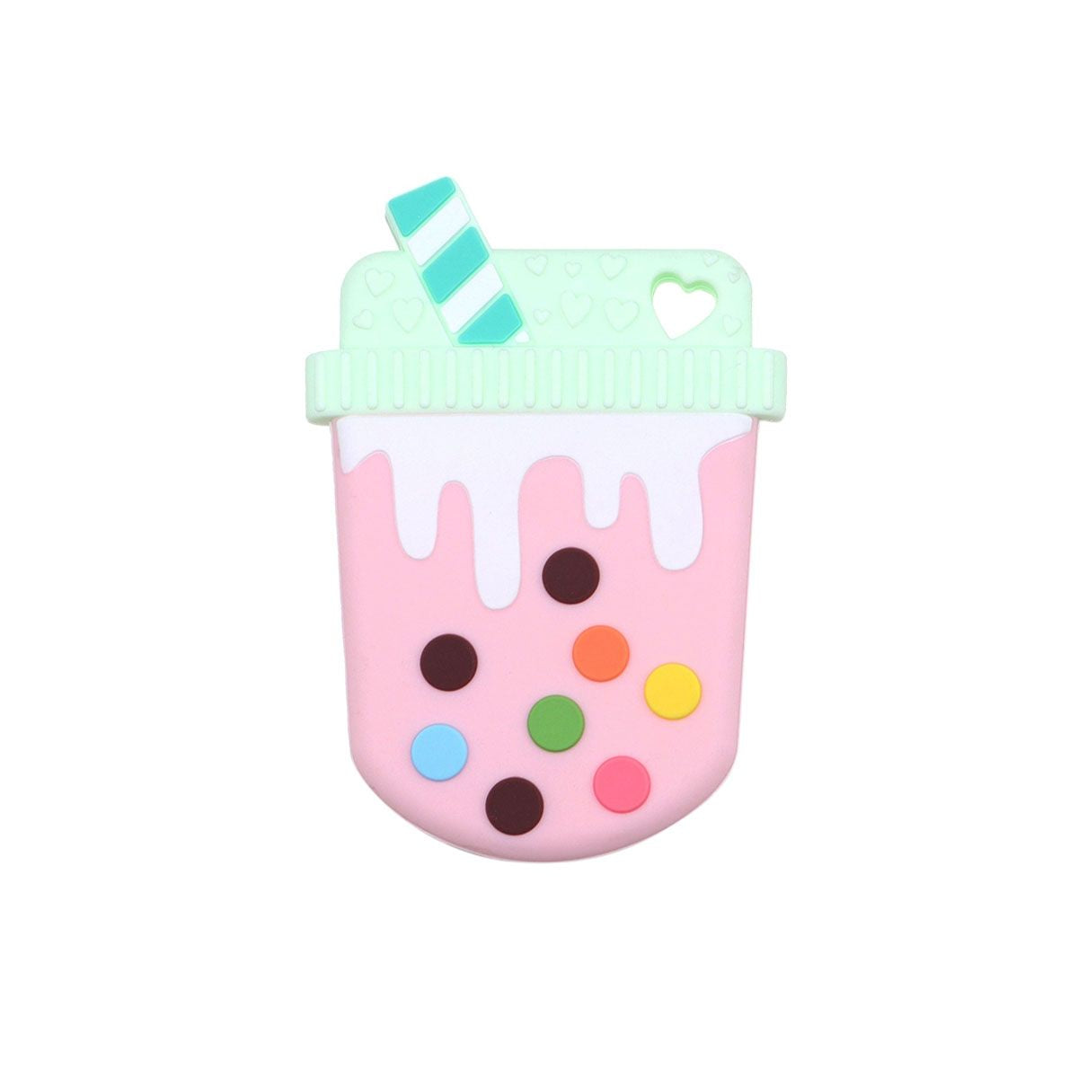 *Shake Shape with Small Heart Silicone Teether, Pink