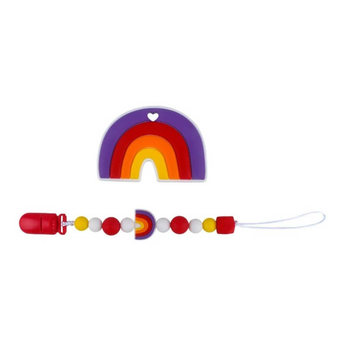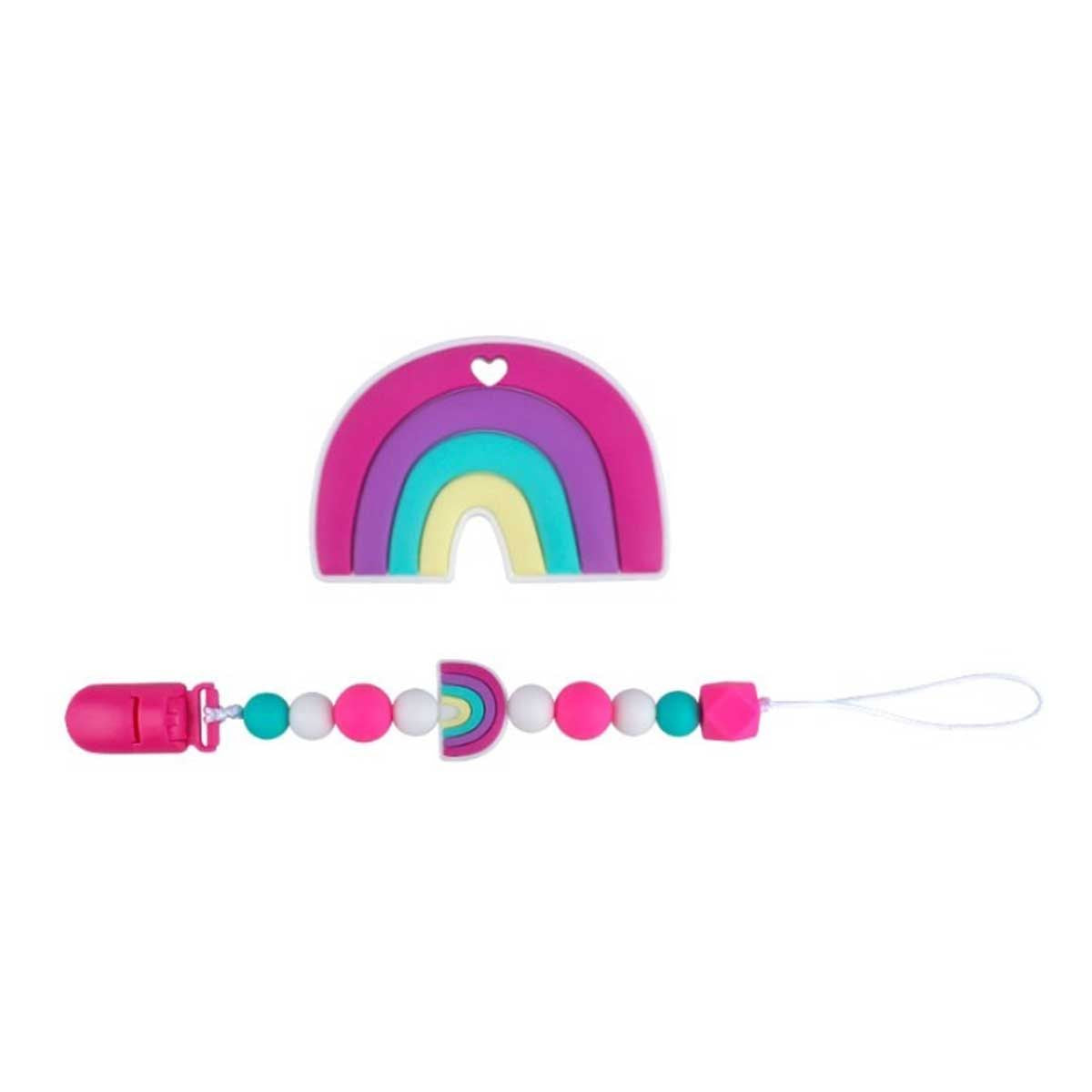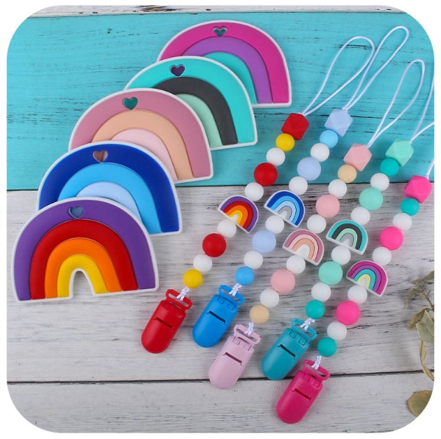 Rainbow Shape Silicone Teether with Pacifier Holder