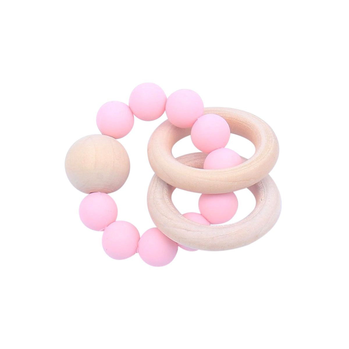 Wooden Ring and Silicone Beads Teether, Pink