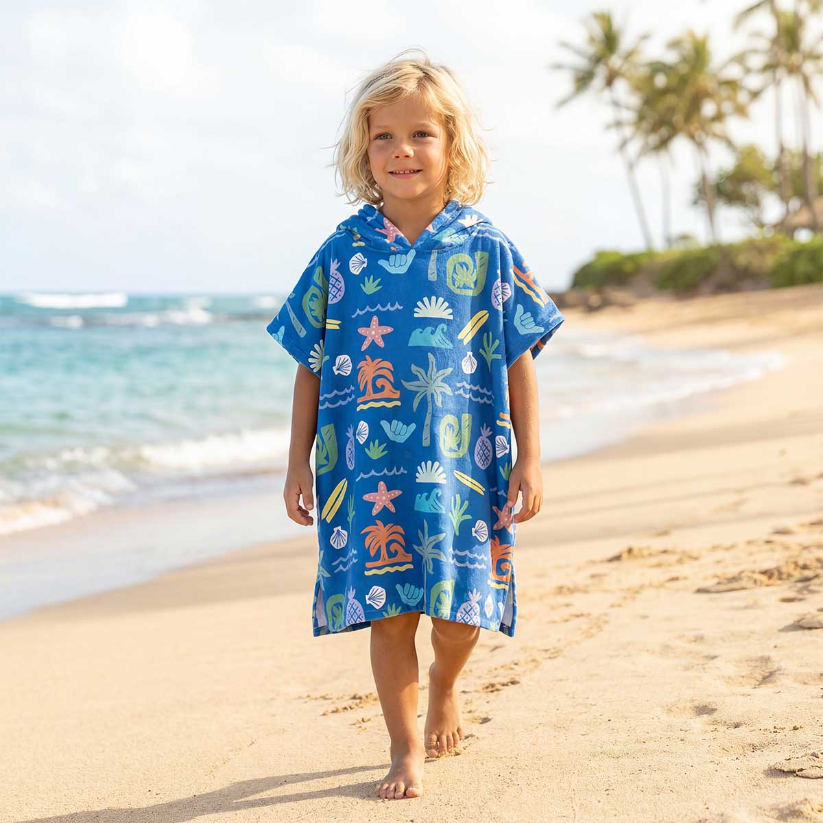 Get your little ones ready for beach adventures with our keiki ponchos! Made with soft, absorbent microfiber fabric, this kids towel poncho is perfect for drying off after splashing in the waves, after a swim in the pool or bath time. With our fun and vibrant prints, it's not only functional but also adds a stylish touch to their beach outfits.