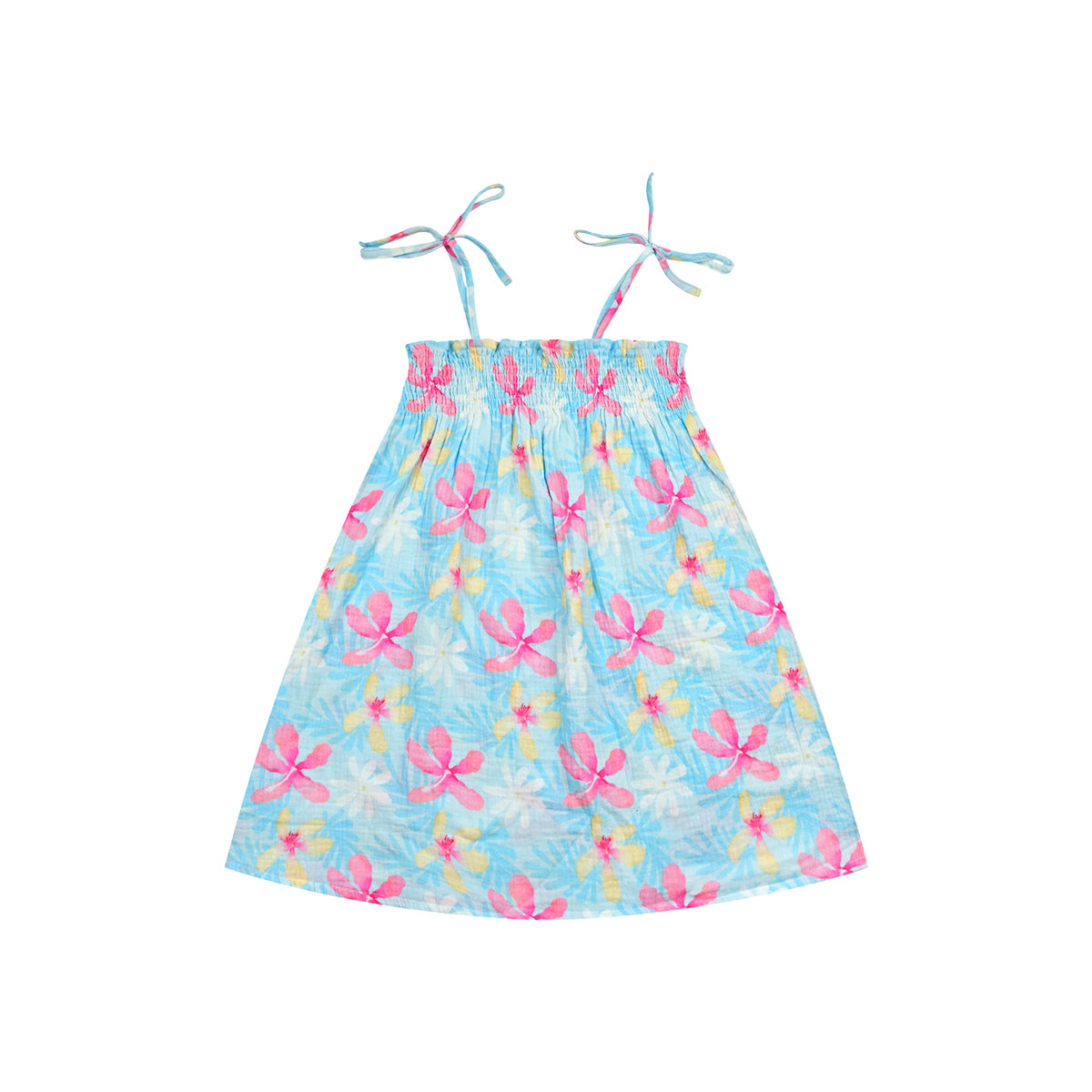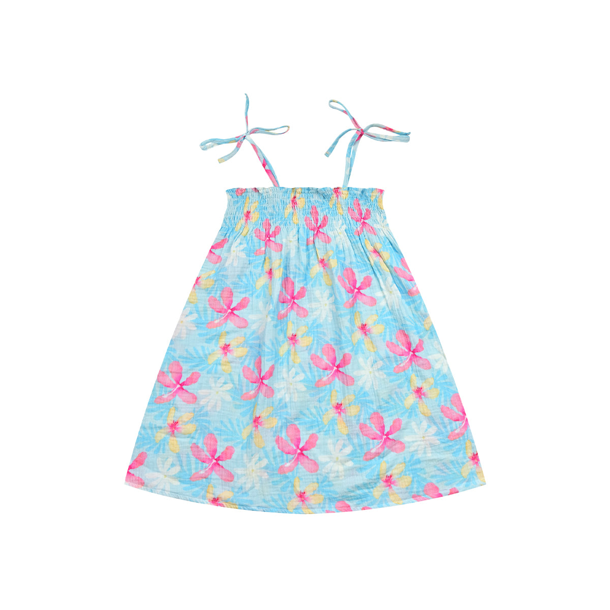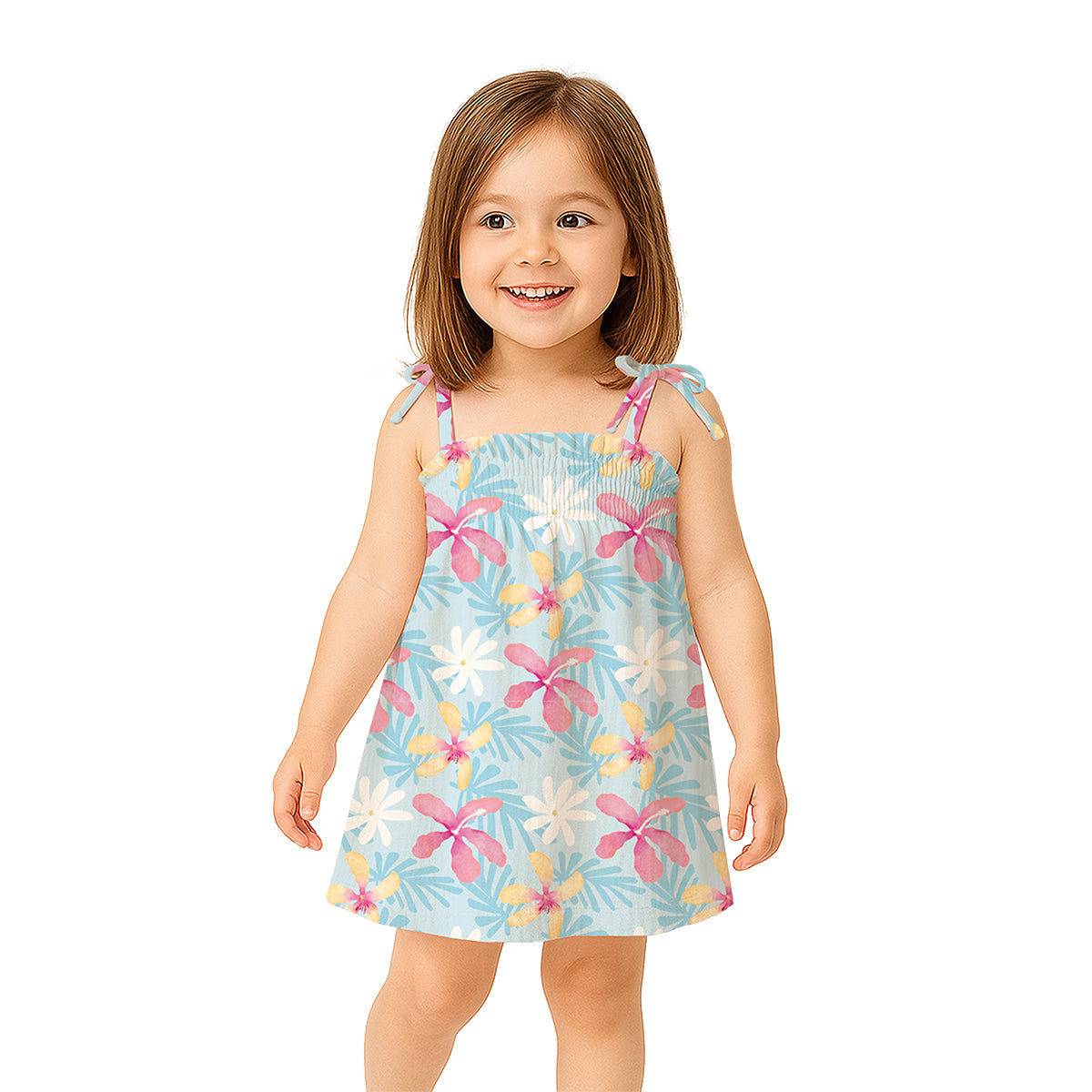 Designed with adjustability in mind, this tie-strap A-line dress allows for a customizable fit as your baby grows. The shoulder ties can be adjusted for length, ensuring comfort and extended wear.
