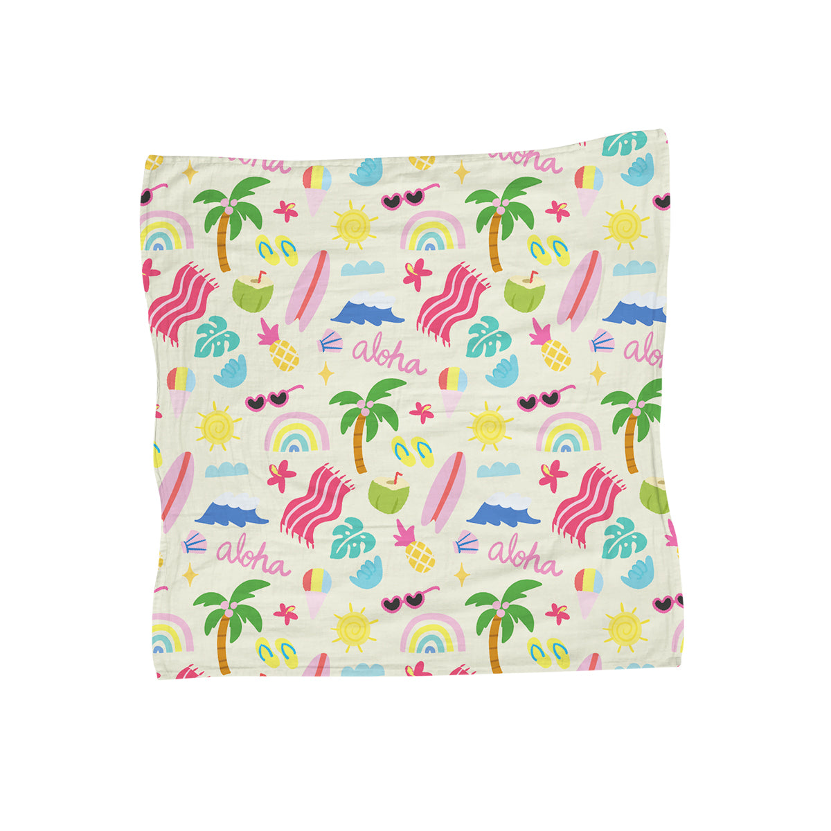 Our Keiki Muslin Blankets, lovingly crafted to wrap your little ones in the gentle embrace of aloha. Made from soft, breathable fabric, these blankets are perfect for cuddling, swaddling, or providing a cozy naptime companion with cute Hawaiian-inspired prints.