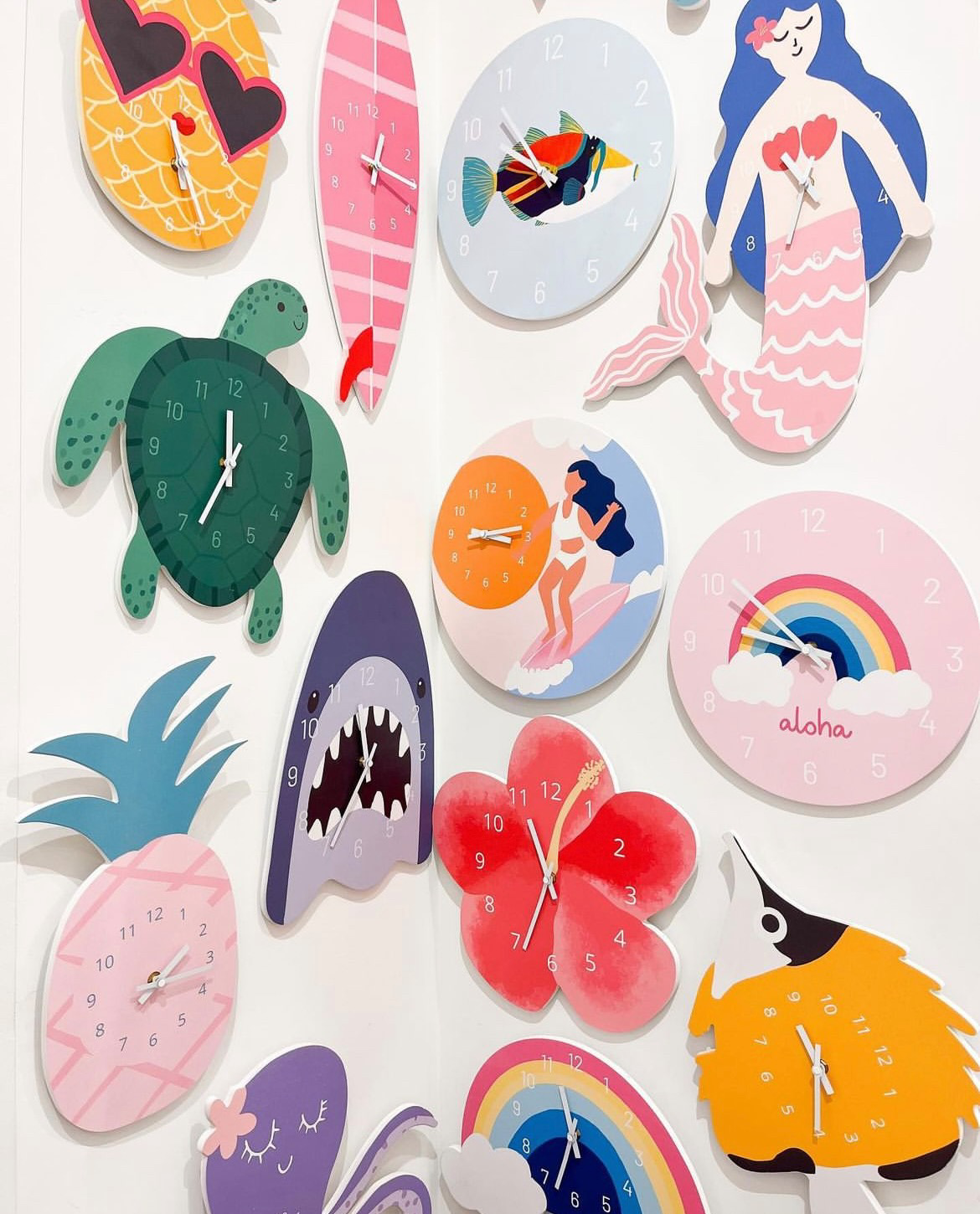 Crafted with utmost precision and quality, our clocks showcases a delightful array of bright, captivating colors that reflect the essence of Hawaii. Each clock is thoughtfully designed to captivate your child's attention and adds the finishing touch to their bedroom decor.