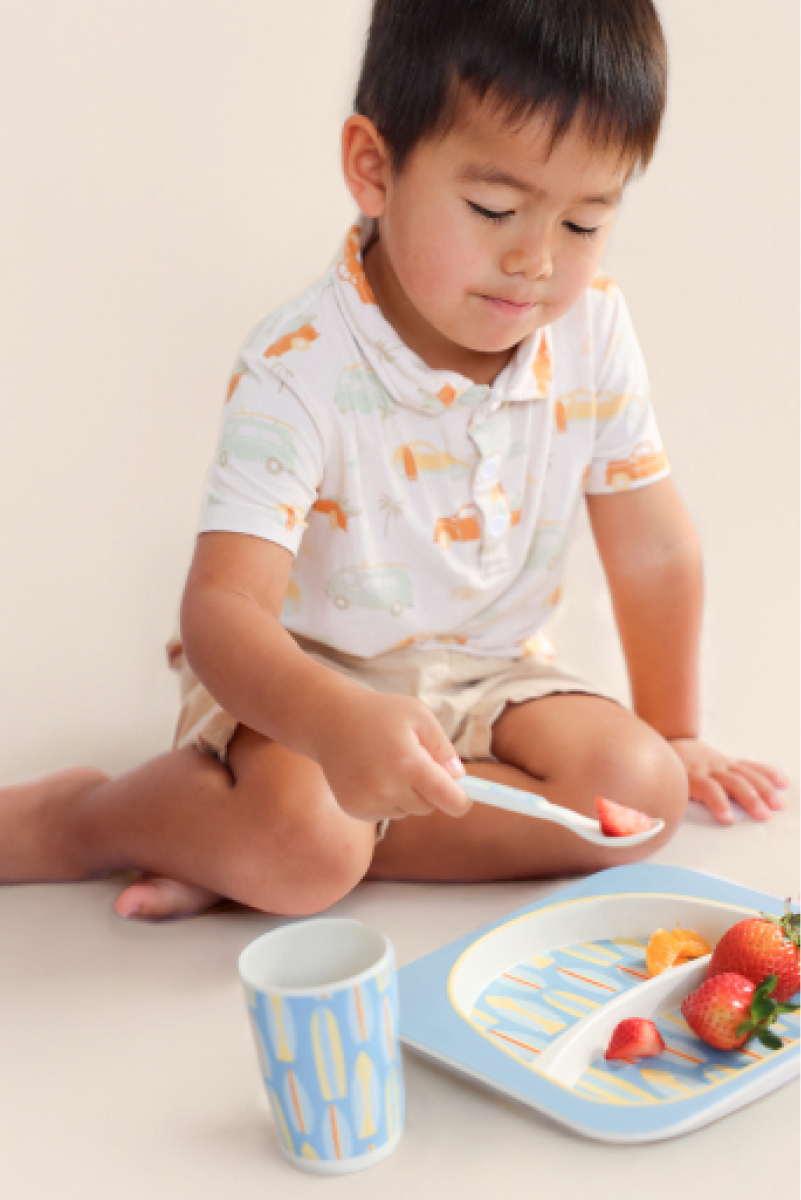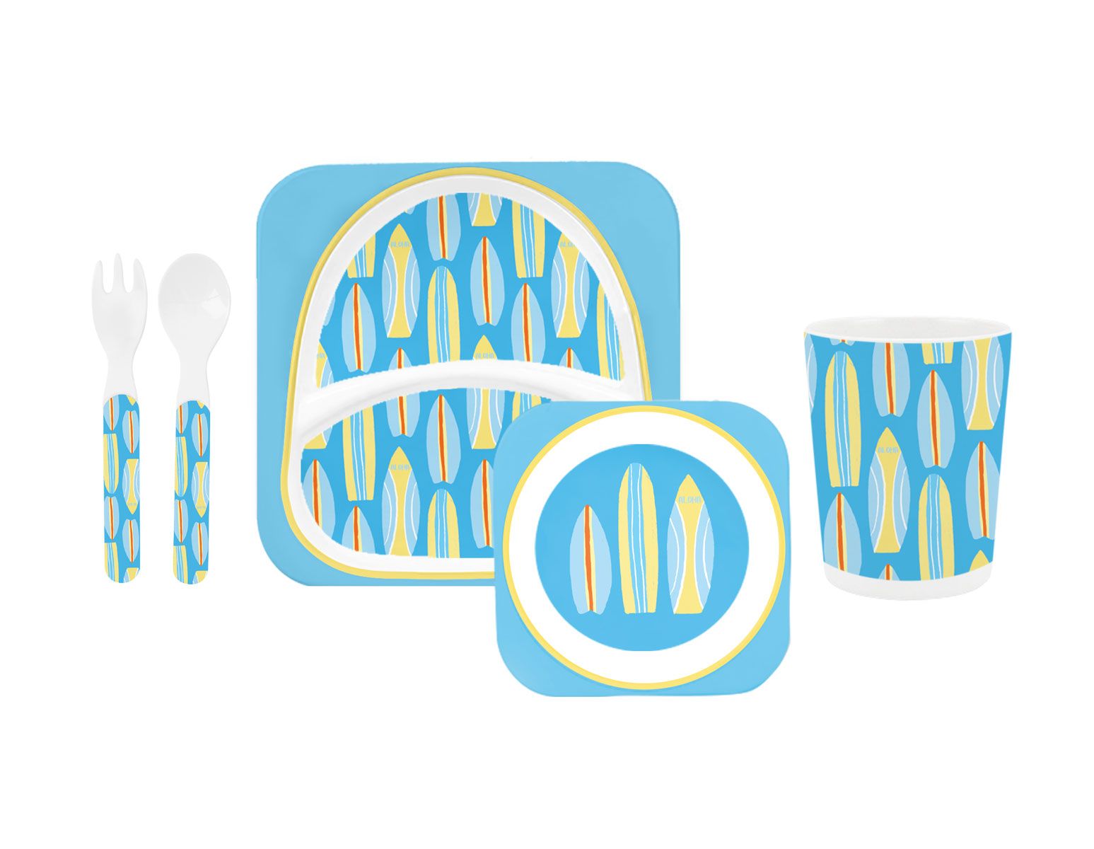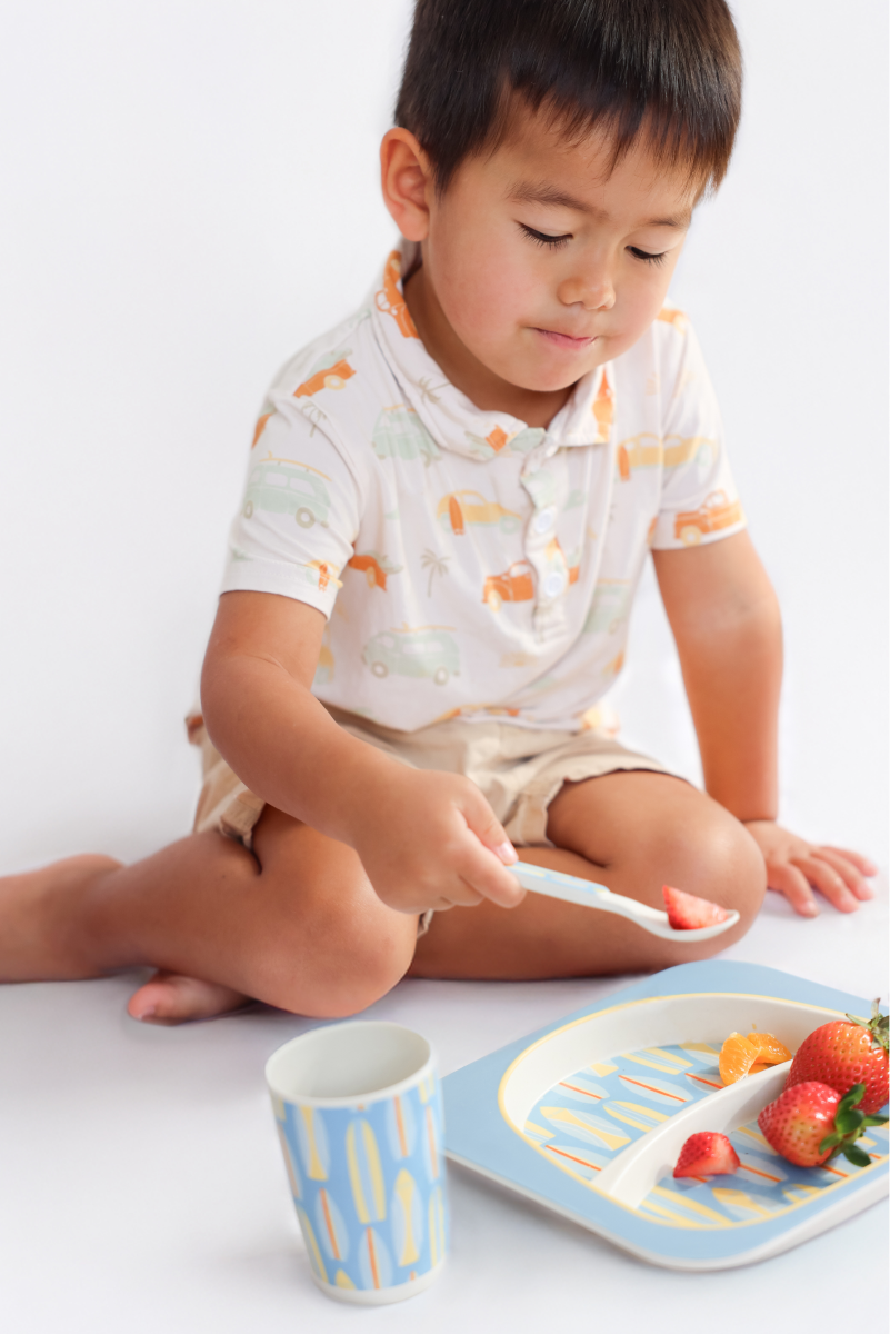Our Keiki Aloha Surfboards Bamboo Fiber Dining Set will make mealtime fun for your young Keiki. All pieces are made from naturally organic and biodegradable bamboo fiber. You can feel safe with the knowledge that your Keiki aren't being exposed to artificial materials full of chemicals.