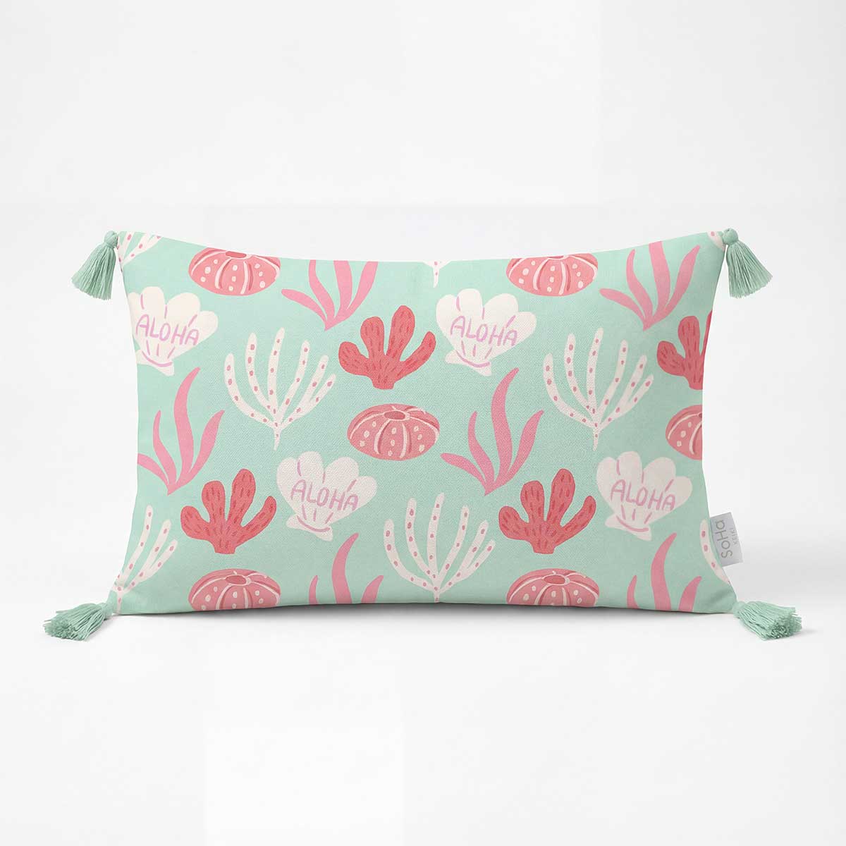 12x20in Under the Aloha Sea Pillow Cover with Pompoms