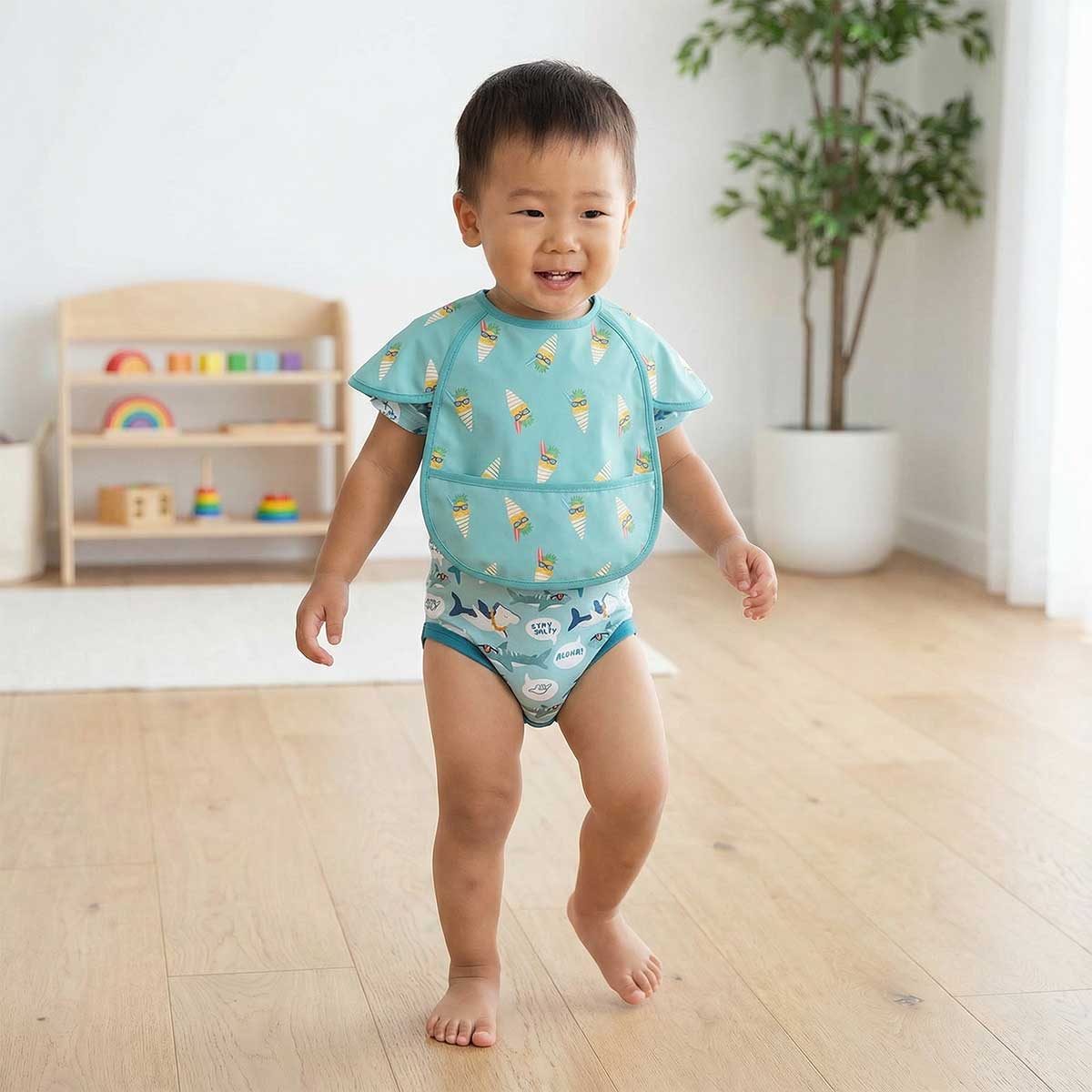 Surf Swirl Seaglass Waterproof Bib with Short Sleeves