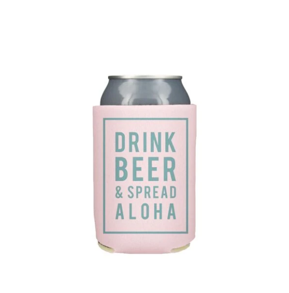 Drink Beer and Spread Aloha Can Cooler, Pink