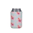 Pink Hibiscus on Blue Can Cooler