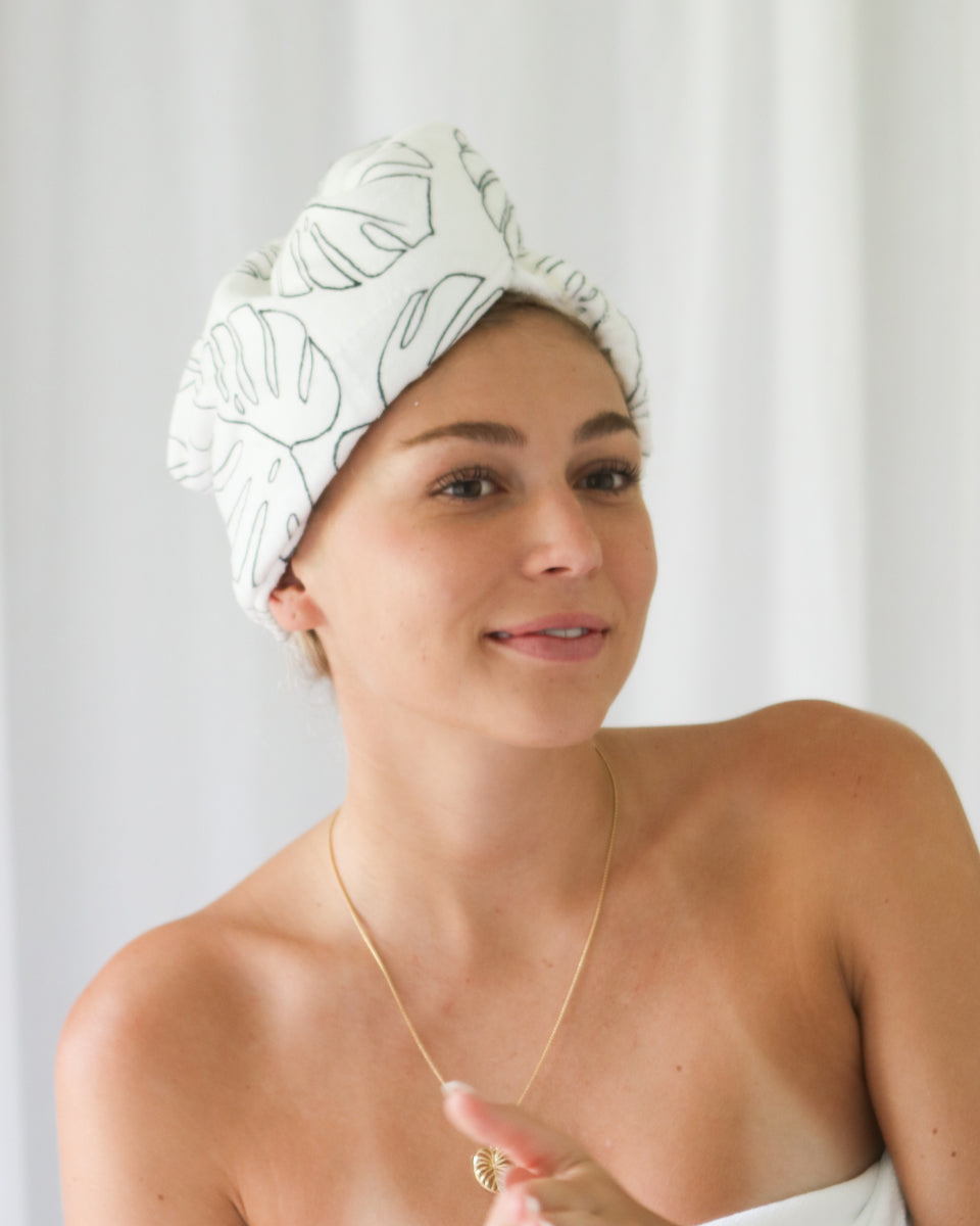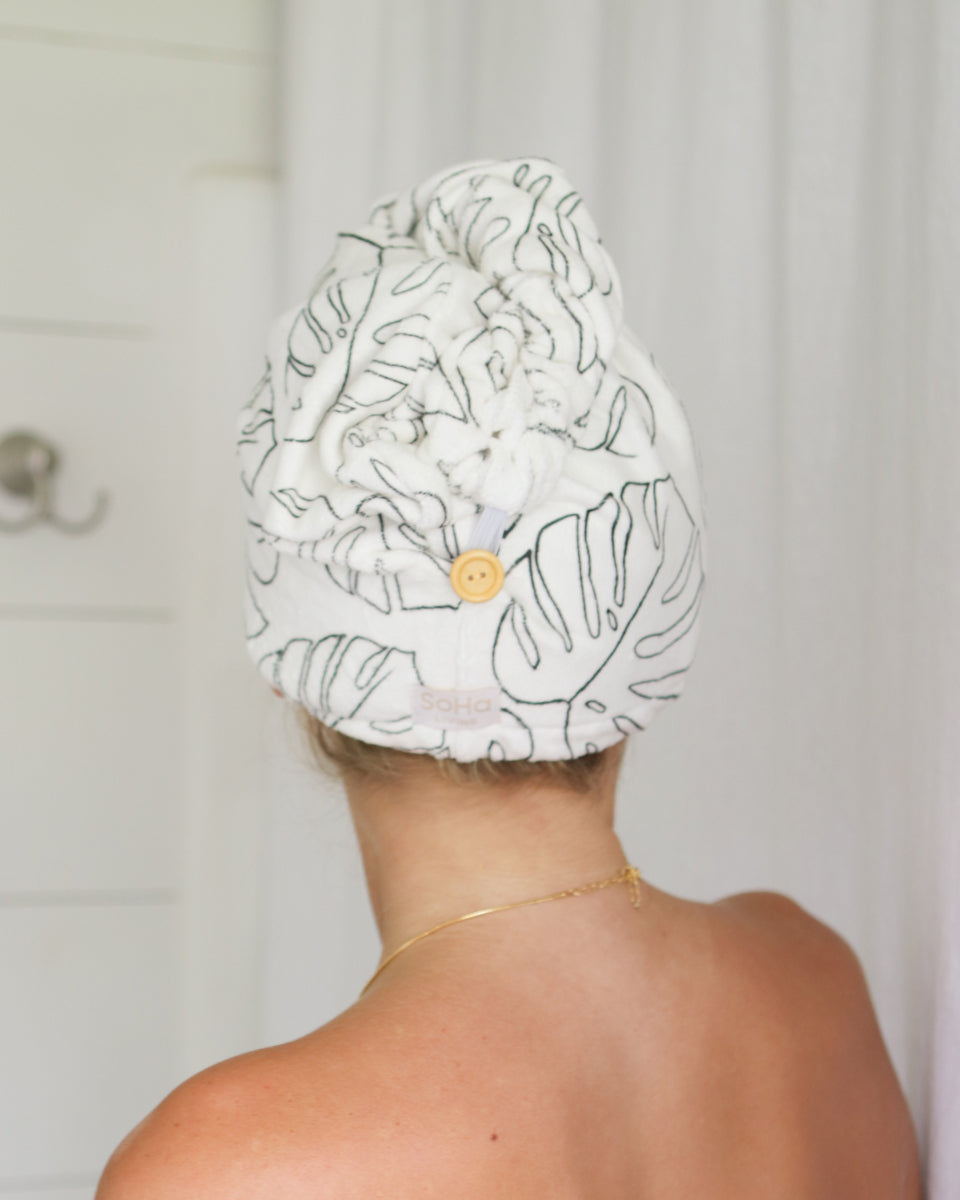 Monstera Outline Microfiber Hair Wrap