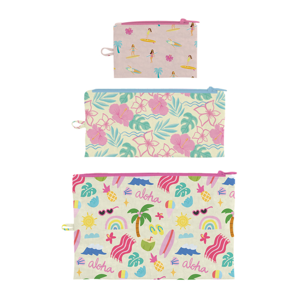 Beach Babes Flat Pouch, Set of 3