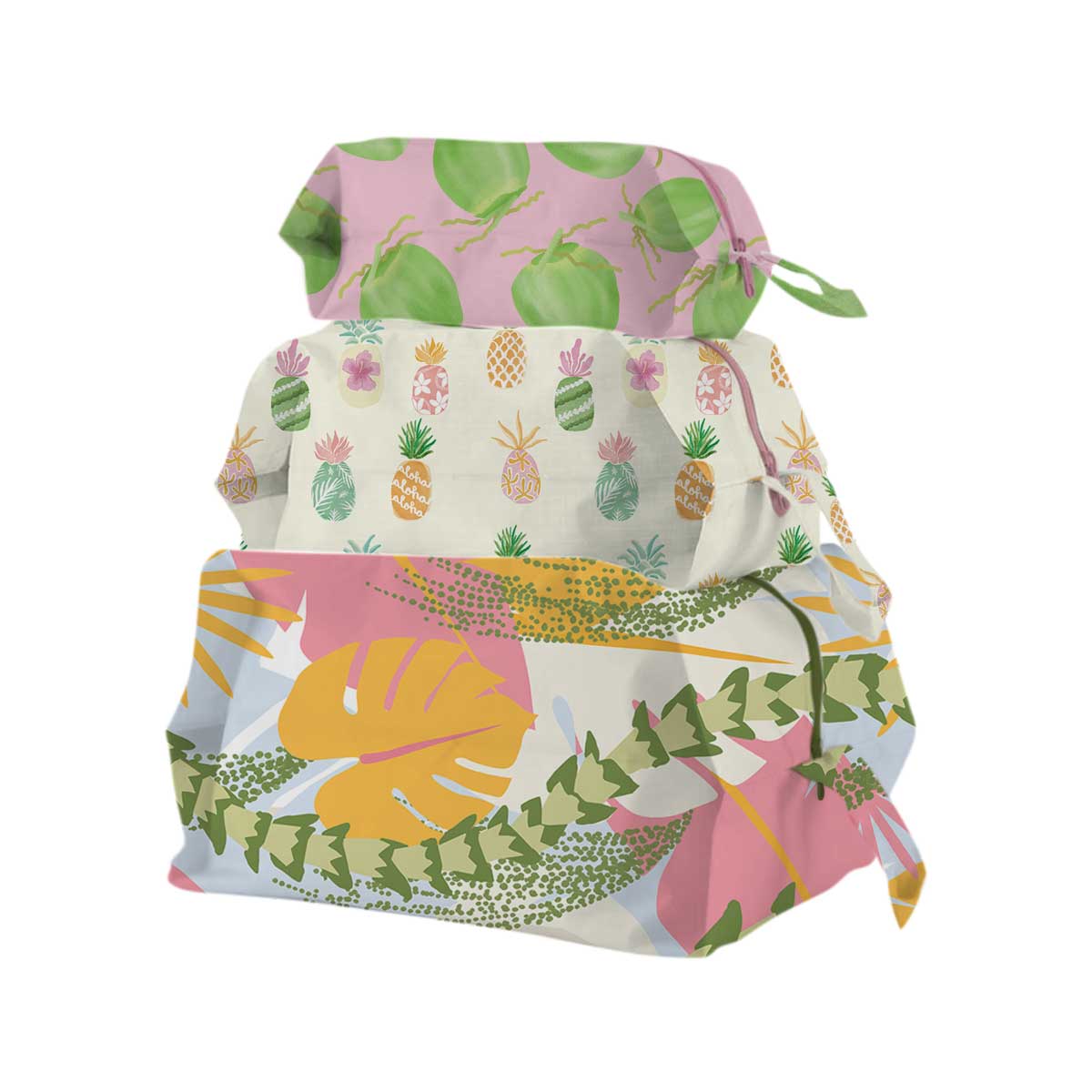 Pink Palmscape 3D Zip Pouch, Set of 3
