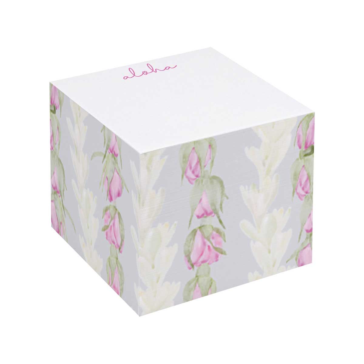 Introducing the Cube Notepad from our Māla Collection – your ideal companion for daily notes and reminders. Its perfect size ensures ample space for your thoughts. With a sticky back, you can place it anywhere for quick access. Adorned with a beautiful lei design on all four sides, it adds a touch of Hawaiian charm to your workspace. Each note features a scripted "aloha" on the header, spreading positivity with every use.