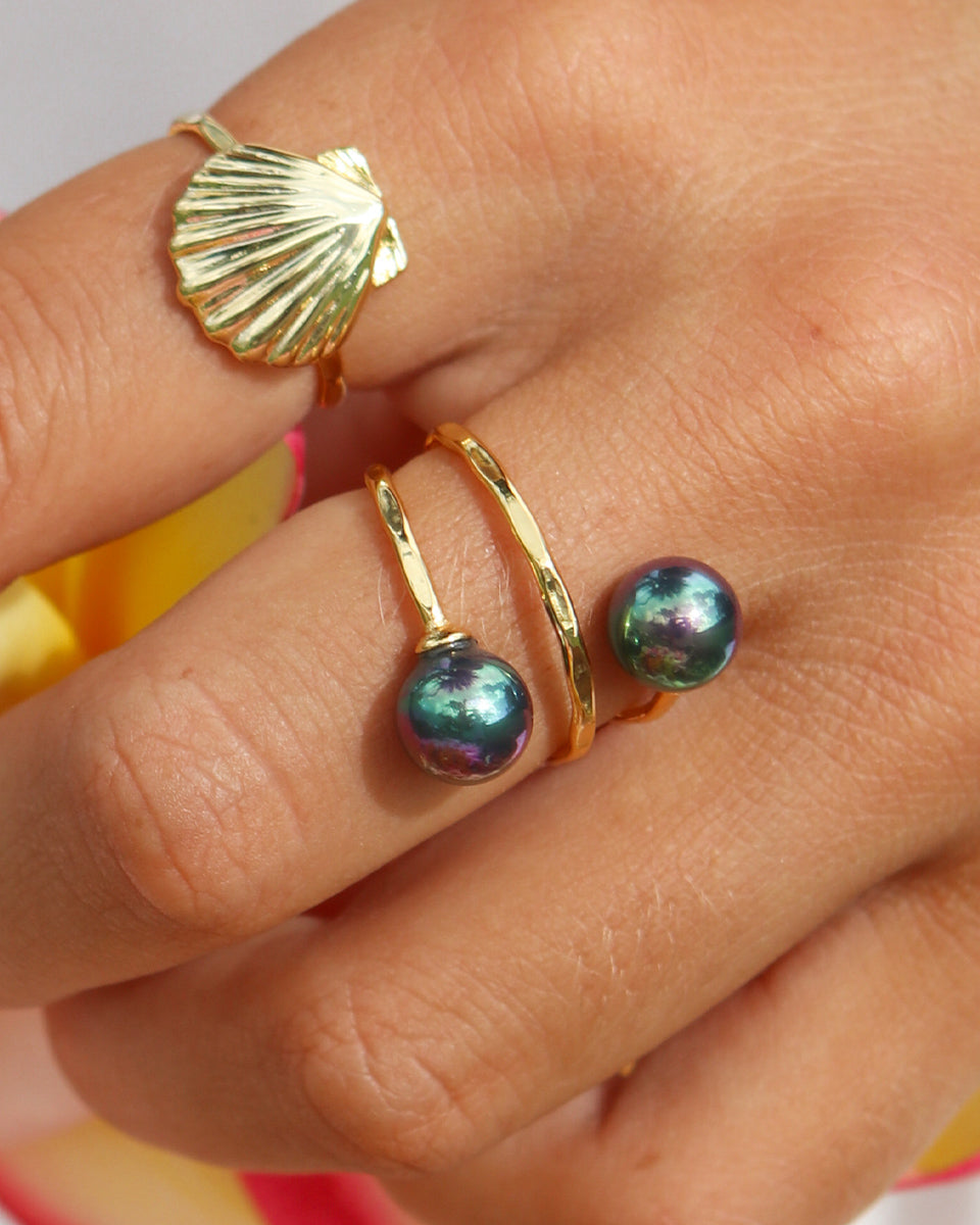 Black Pearl Duo Hammer Ring, Gold