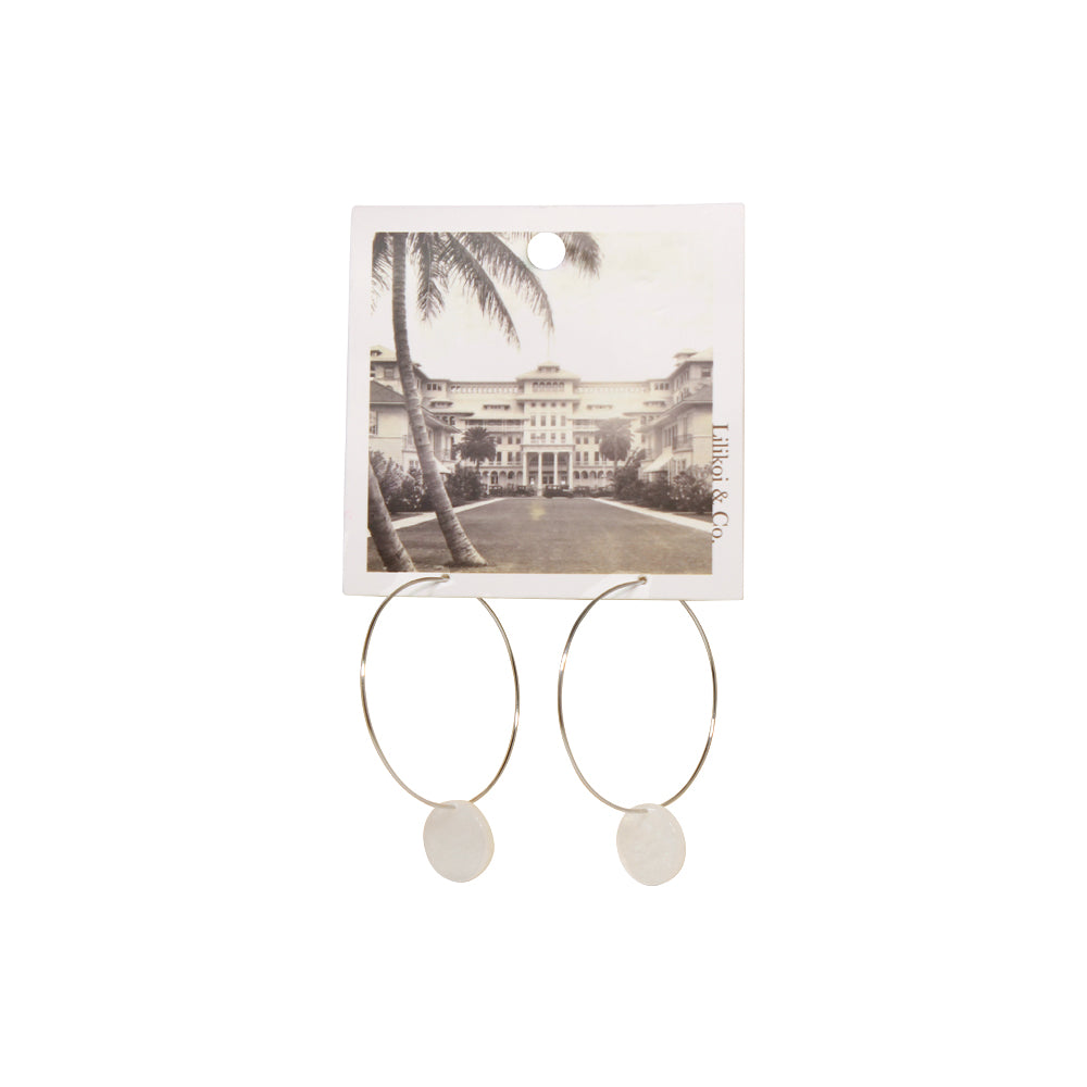 Circle Tortoise on Metal Drop Earrings White
