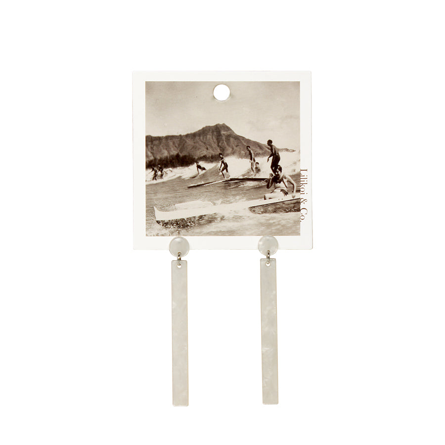 Long Bar Tortoise Stud Earrings White