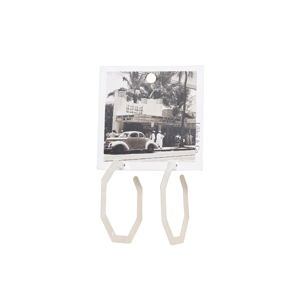 Octagon Tortoise Hoop Earrings White