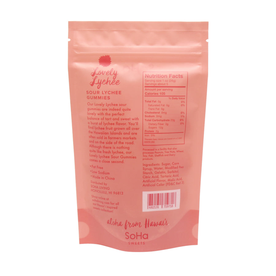 Our Lovely Lychee sour gummies are indeed quite lovely with the perfect balance of tart and sweet with a burst of lychee flavor. You'll find lychee fruit grown all over the Hawaiian Islands and are often sold in framers markets and on the side of the road. Although there is nothing quite like fresh lychee, our Lovely Lychee Sour Gummies comes a close second.
