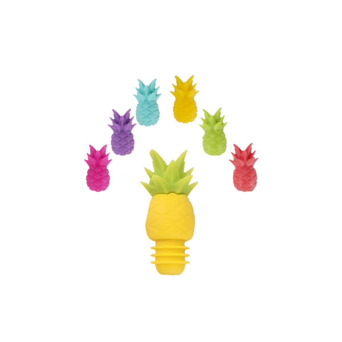 Pineapple Silicone Wine Stopper and Drink Markers , Set of 7
