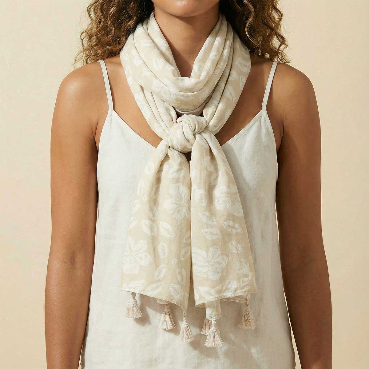 75x35in Petal Float Cream Scarf
