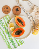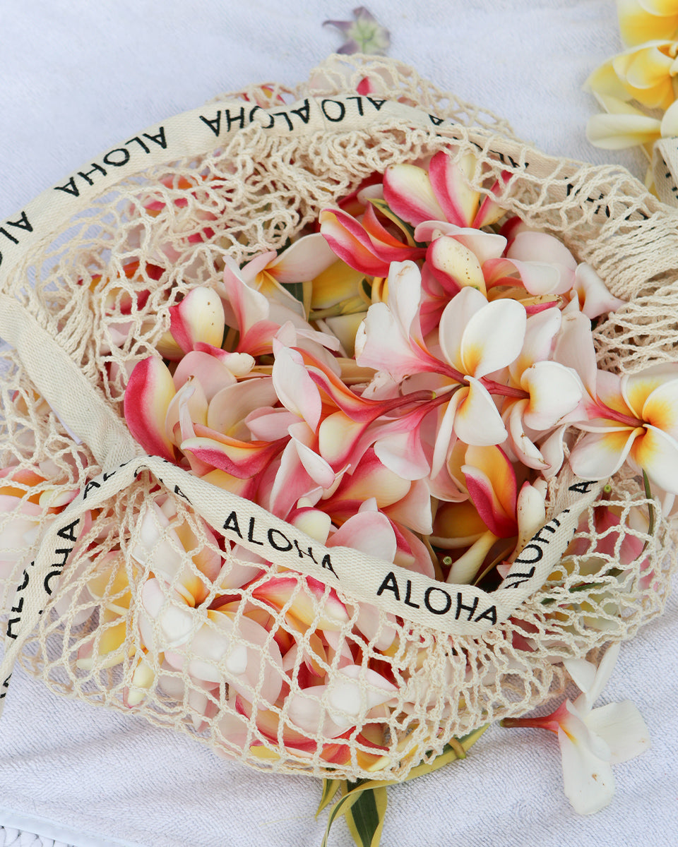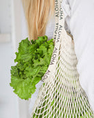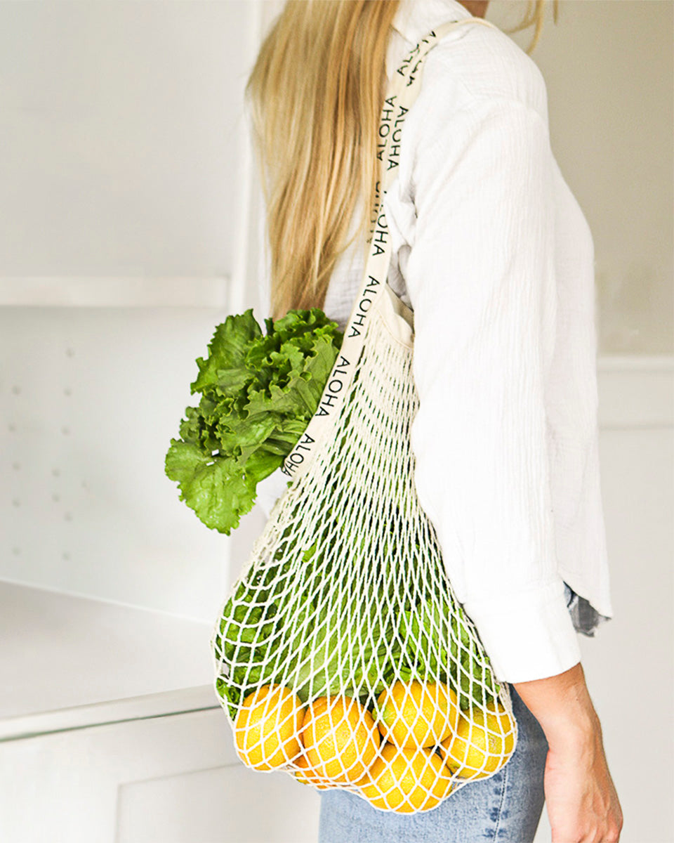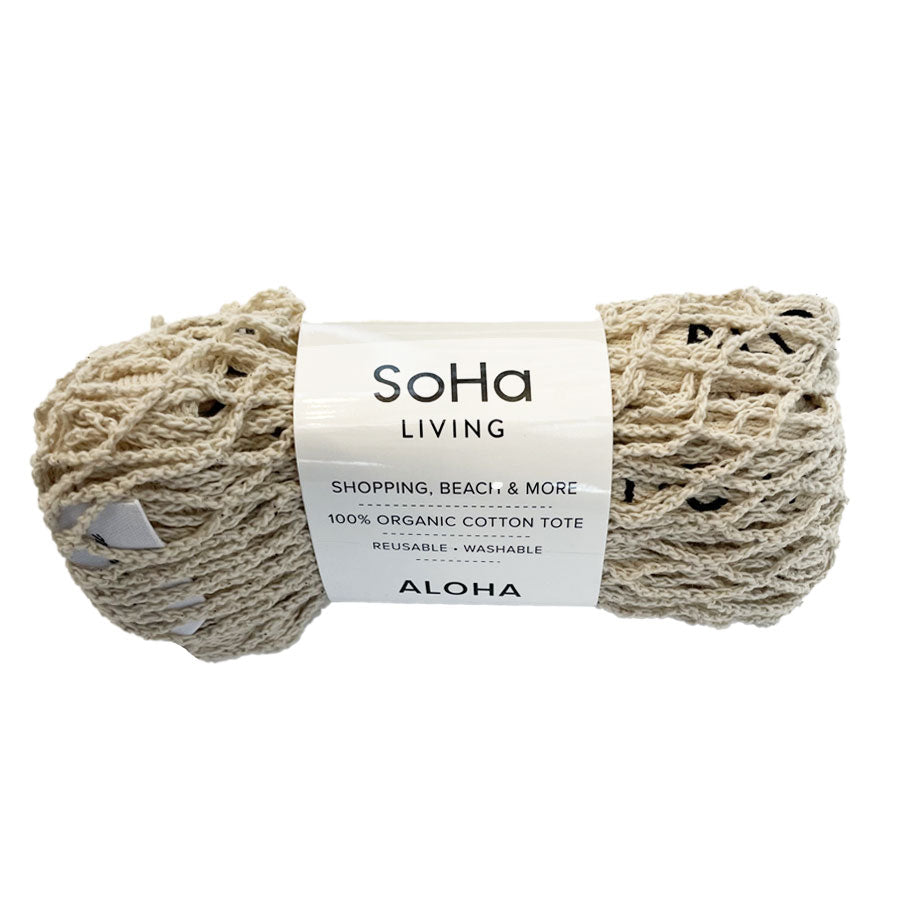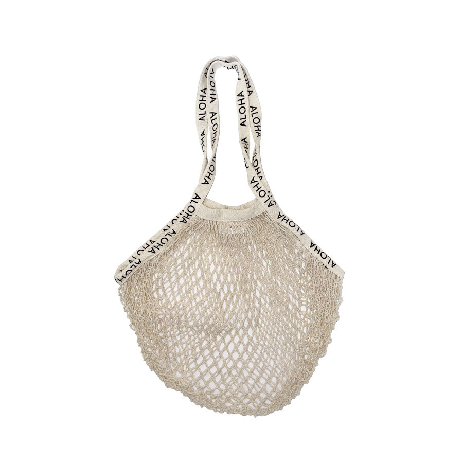 Sport an effortlessly chic look with our Cotton Net Bag. Its lightweight nature and trendy look makes it the perfect accessory to bring to a casual trip to the beach, the market, or to a party! Made with 100% cotton and lined with ALOHA on its straps. Available in 14 different colors!