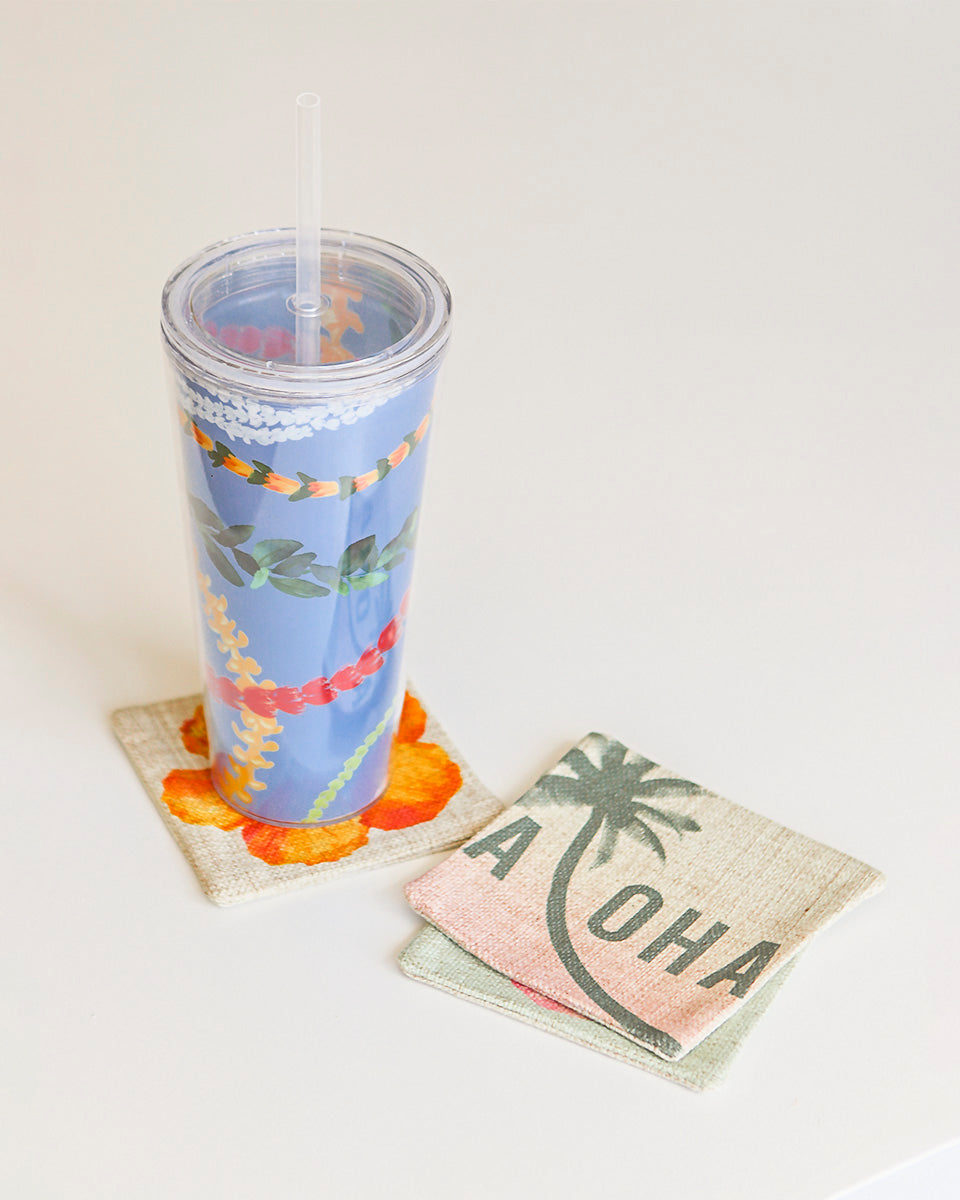Aloha Palm Tree Fabric Coaster