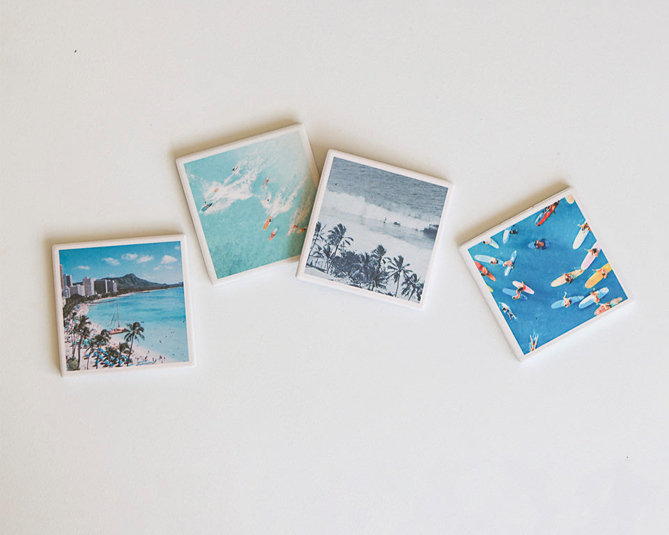 Elevate your beverage experience with our absorbent ceramic coasters, featuring a cork backing for stability and protection of any countertop. Embrace a tropical, coastal, or retro vibe with our vibrant and stylish prints. Protect your surfaces while adding a touch of charm to your space.