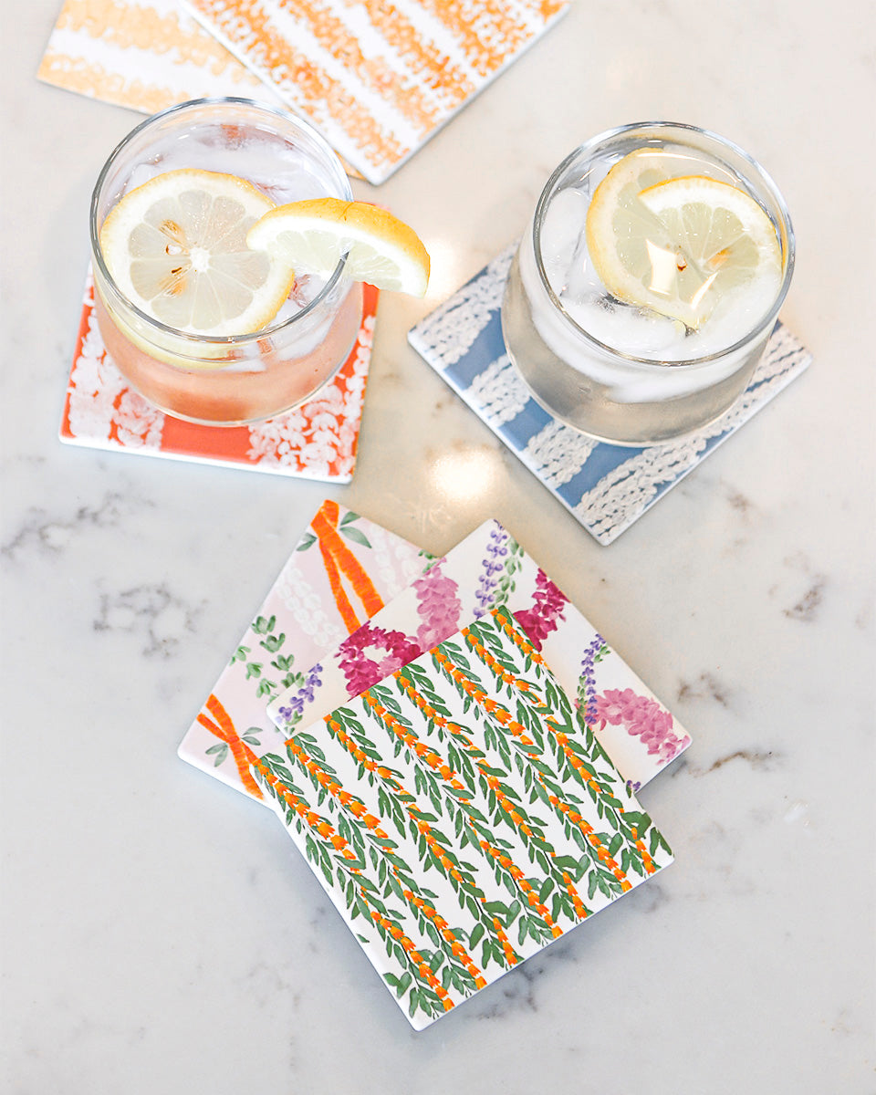Elevate your beverage experience with our absorbent ceramic coasters, featuring a cork backing for stability and protection of any countertop. Embrace a tropical, coastal, or retro vibe with our vibrant and stylish prints. Protect your surfaces while adding a touch of charm to your space.